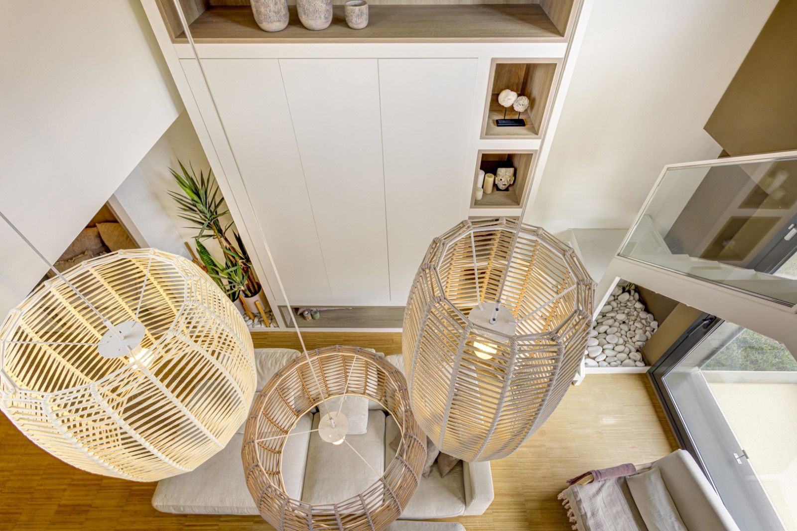 • Parquet de bambú natural en ambas plantas, que aporta calidez, elegancia y durabilidad.