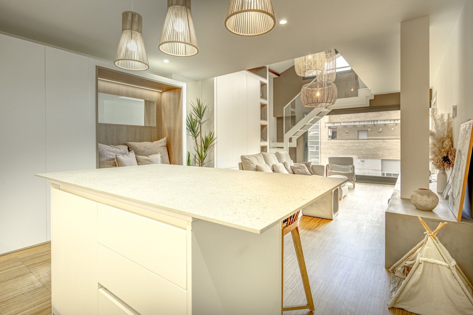 Te presentamos este espectacular ático dúplex, ubicado en un edificio construido en 2021 y en perfecto estado de conservación. Se entrega prácticamente amueblado y destaca por su diseño actual, excelentes calidades y una luminosidad excepcional, gracias a sus grandes ventanales de doble altura.