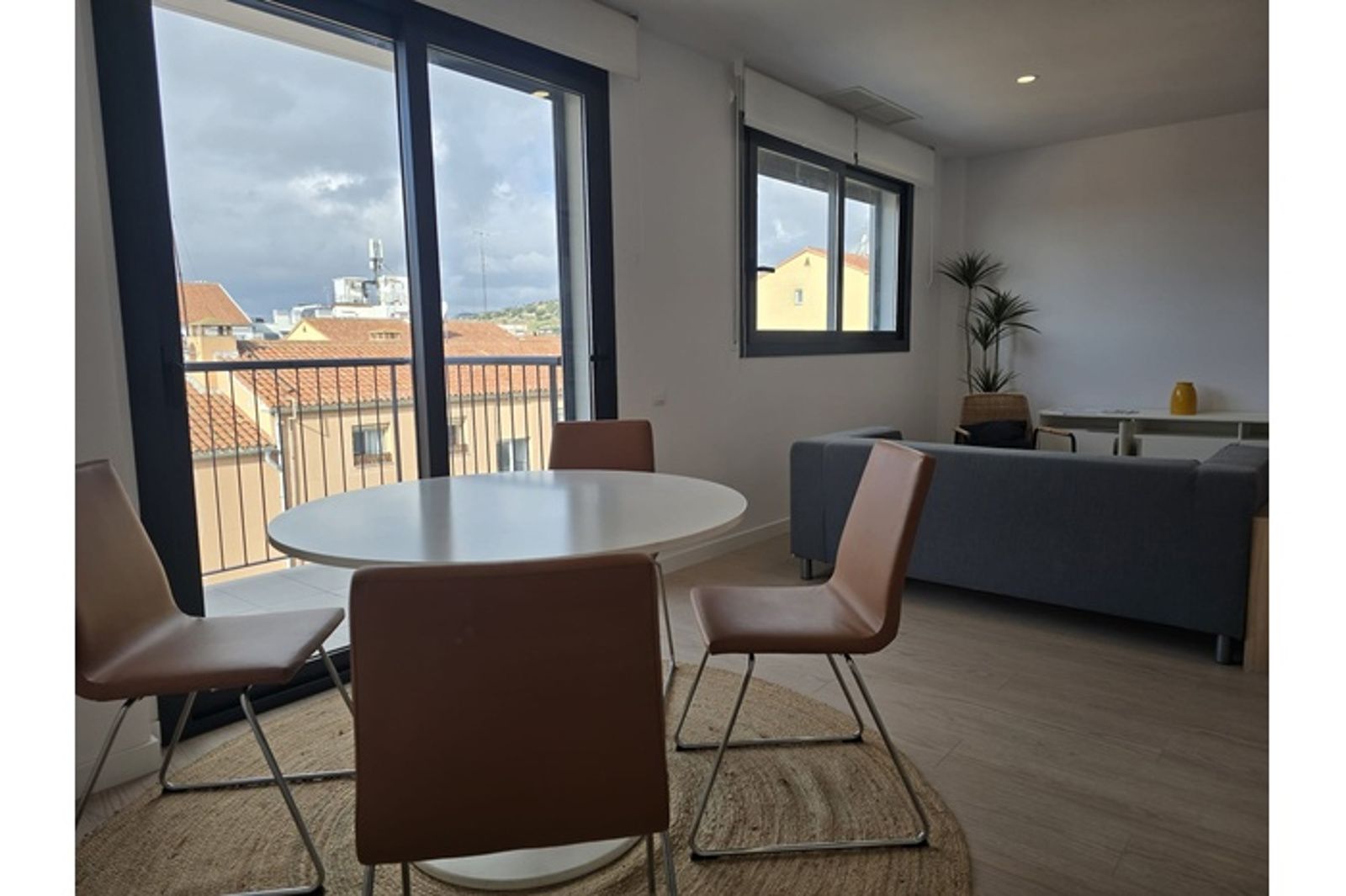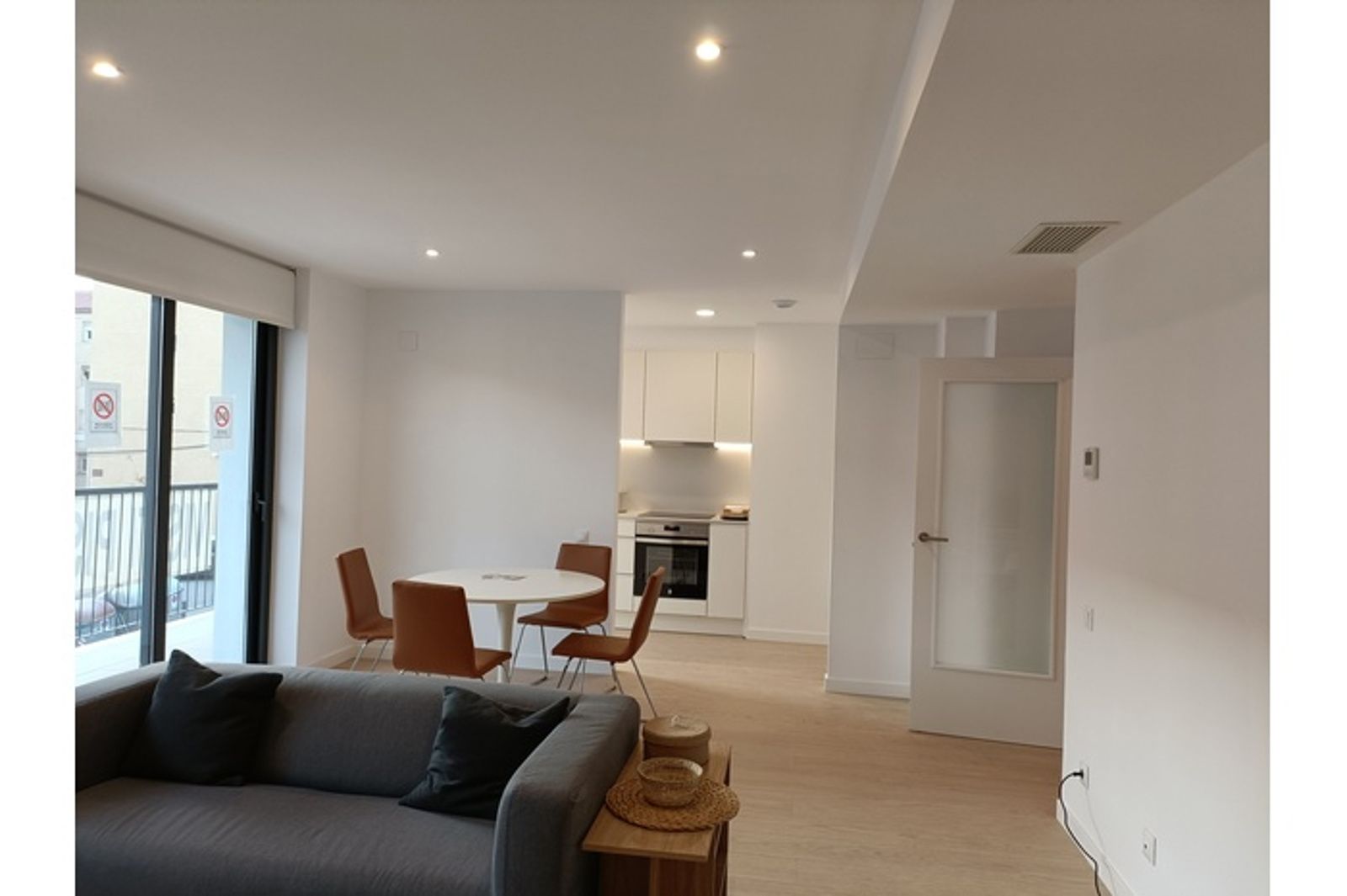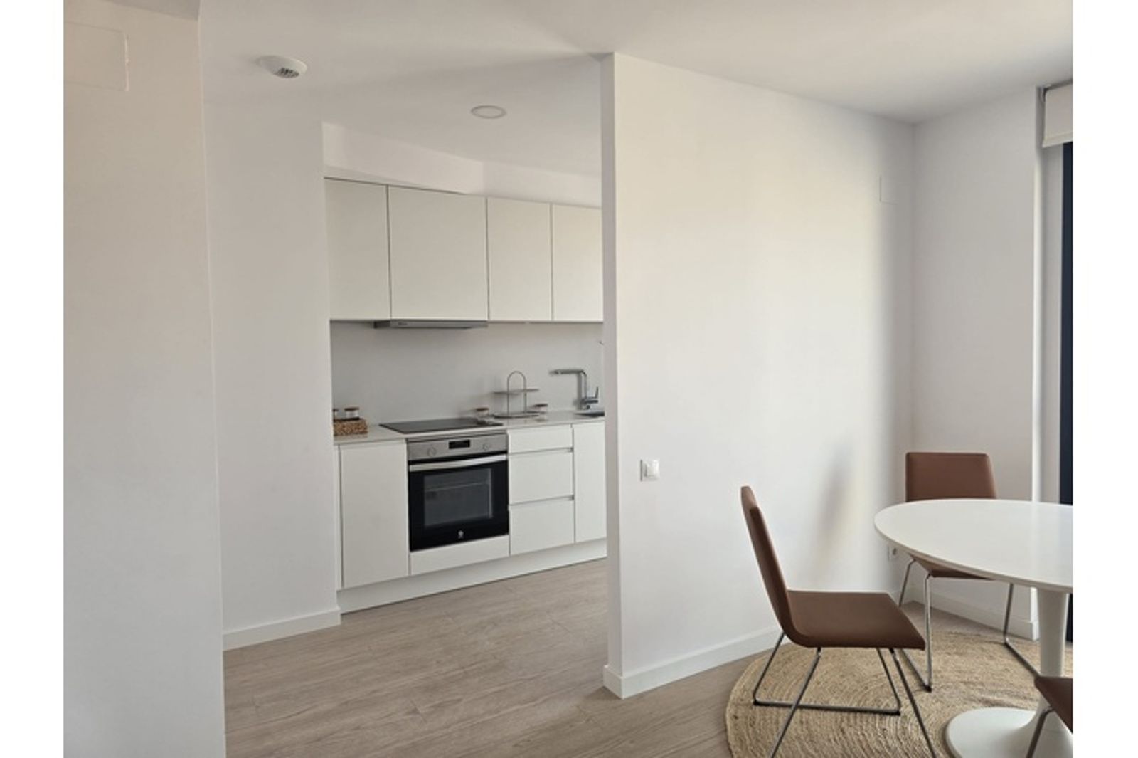 Acabados que incluyen suelos de parquet laminado y gres porcelánico en zonas húmedas, cocina equipada , placa de inducción, horno eléctrico,  Sistema de climatización por conductos de aire frío y caliente. Sistema de alarma incluido.