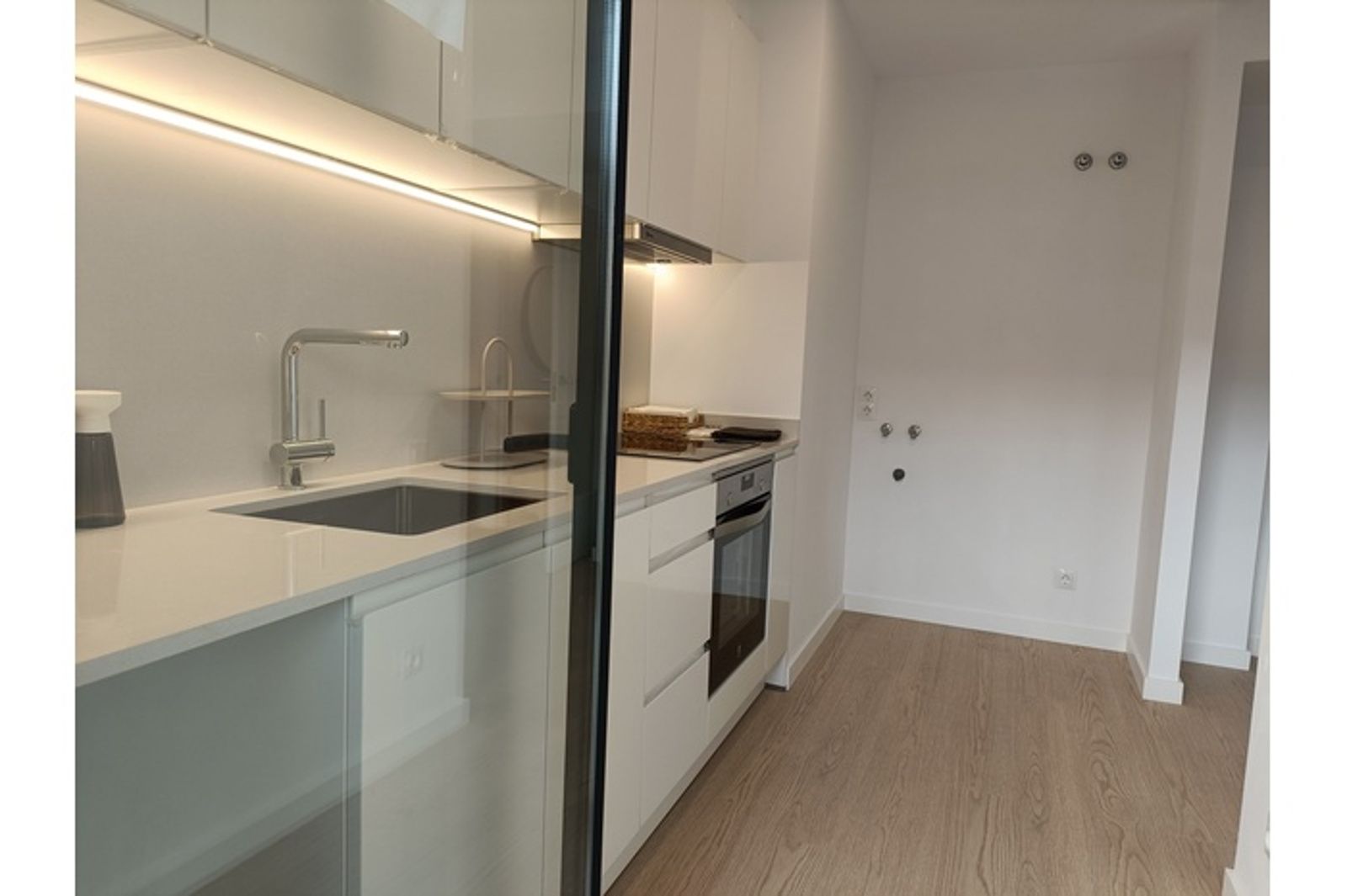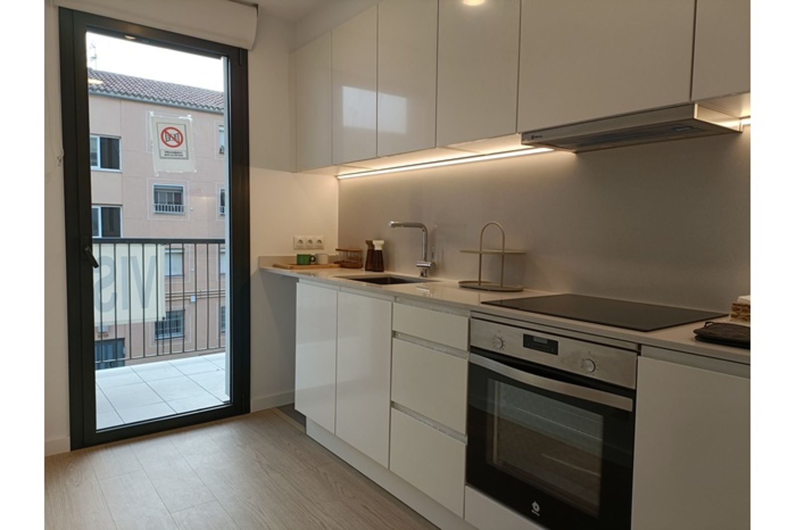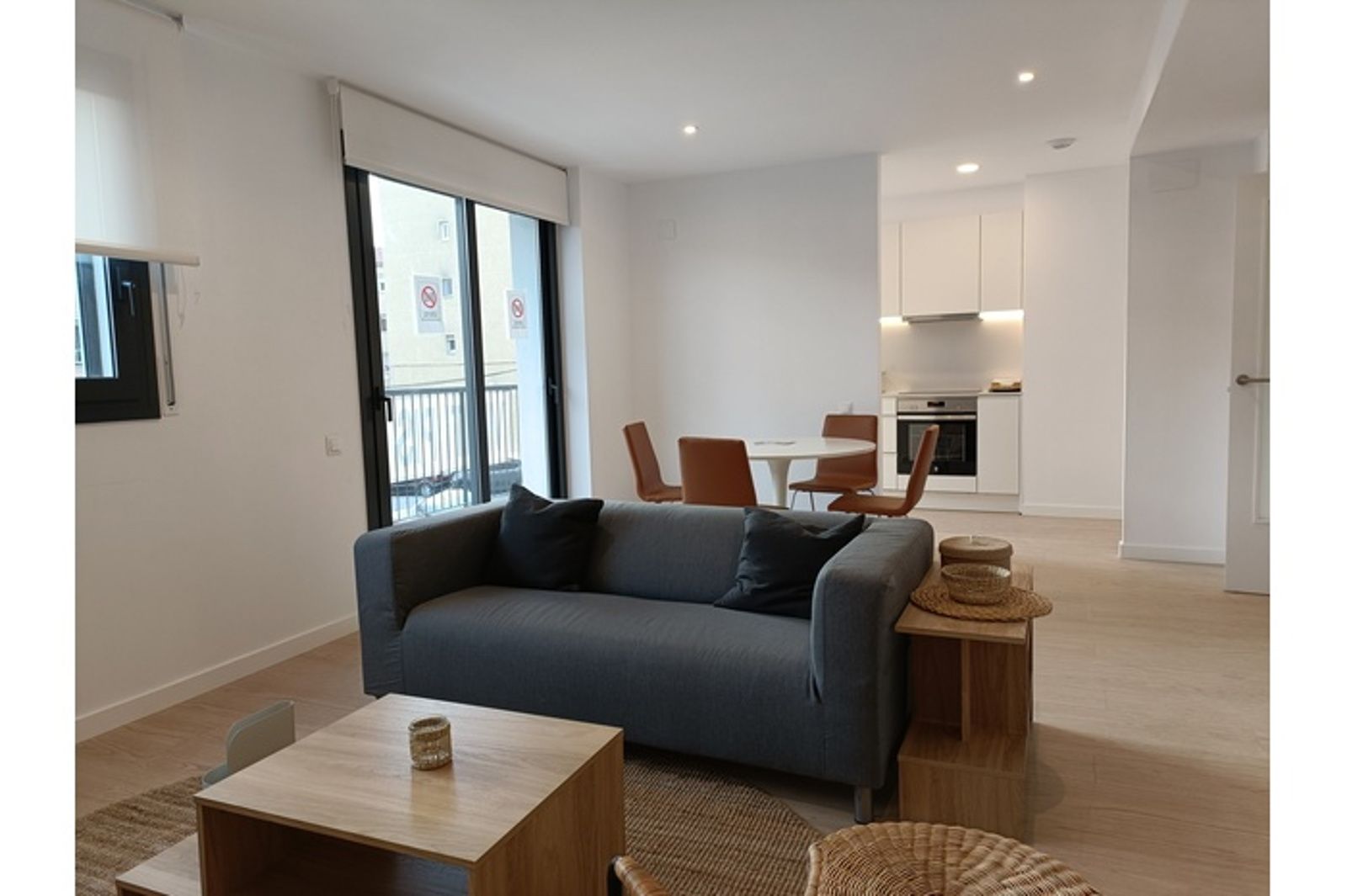 Acabados que incluyen suelos de parquet laminado y gres porcelánico en zonas húmedas, cocina equipada , placa de inducción, horno eléctrico,  Sistema de climatización por conductos de aire frío y caliente. Sistema de alarma incluido.